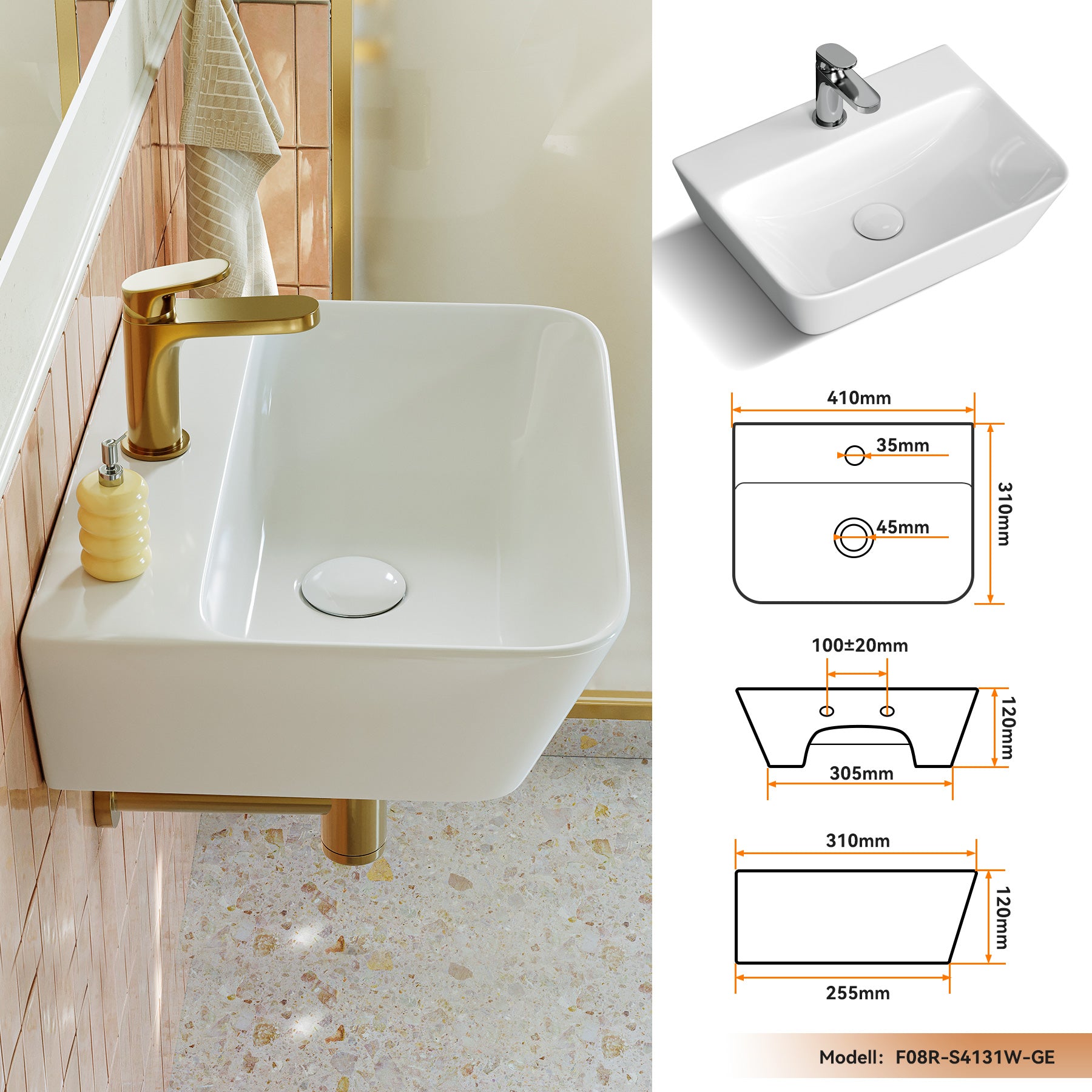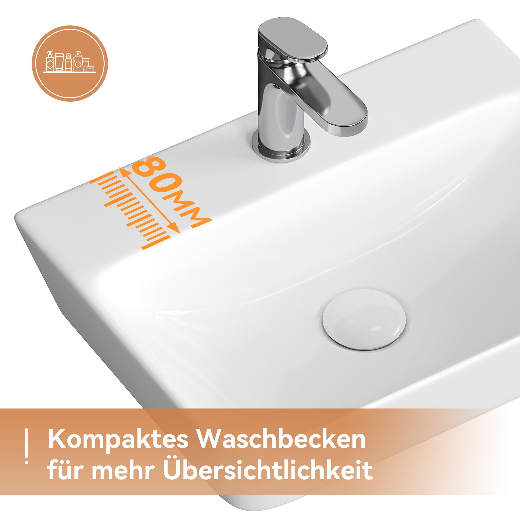 HOROW F08R-S4131W Eckiges Waschbecken 40cm