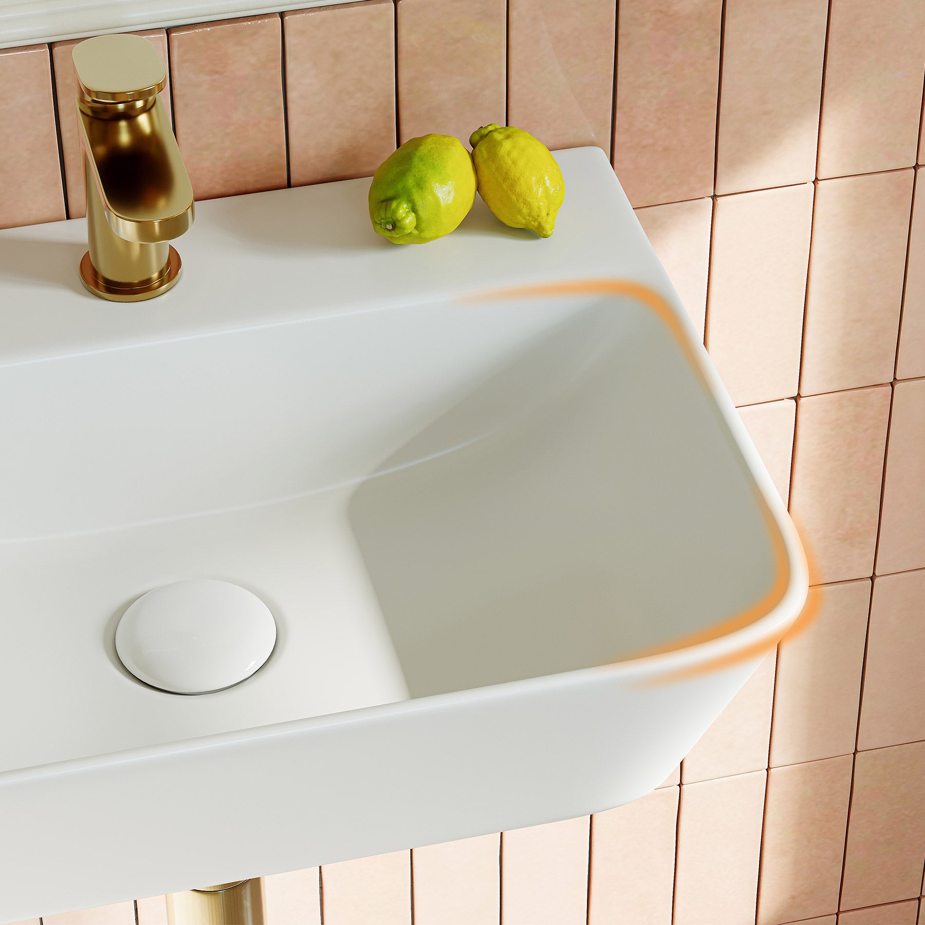Aus robuster Sanitärkeramik, bei hoher Temperatur gebrannt – kratzfest, langlebig und besonders pflegeleicht. - Standard-Hahnloch: