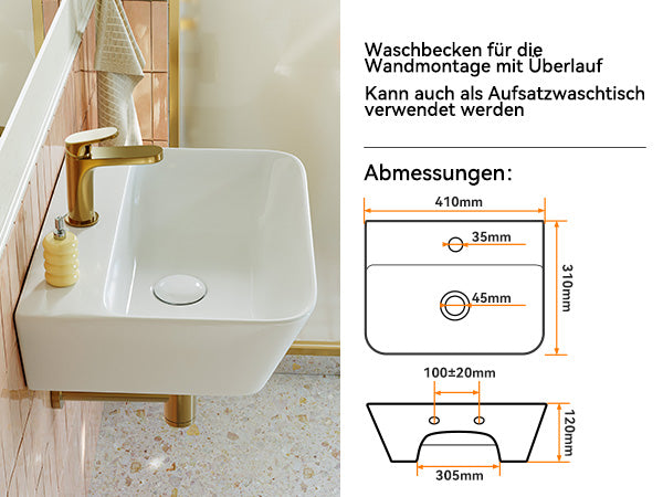 Geeignet zur Wandmontage oder als Aufsatzwaschbecken – passt sich Ihren individuellen Bedürfnissen perfekt an. - Hochwertige Keramik: