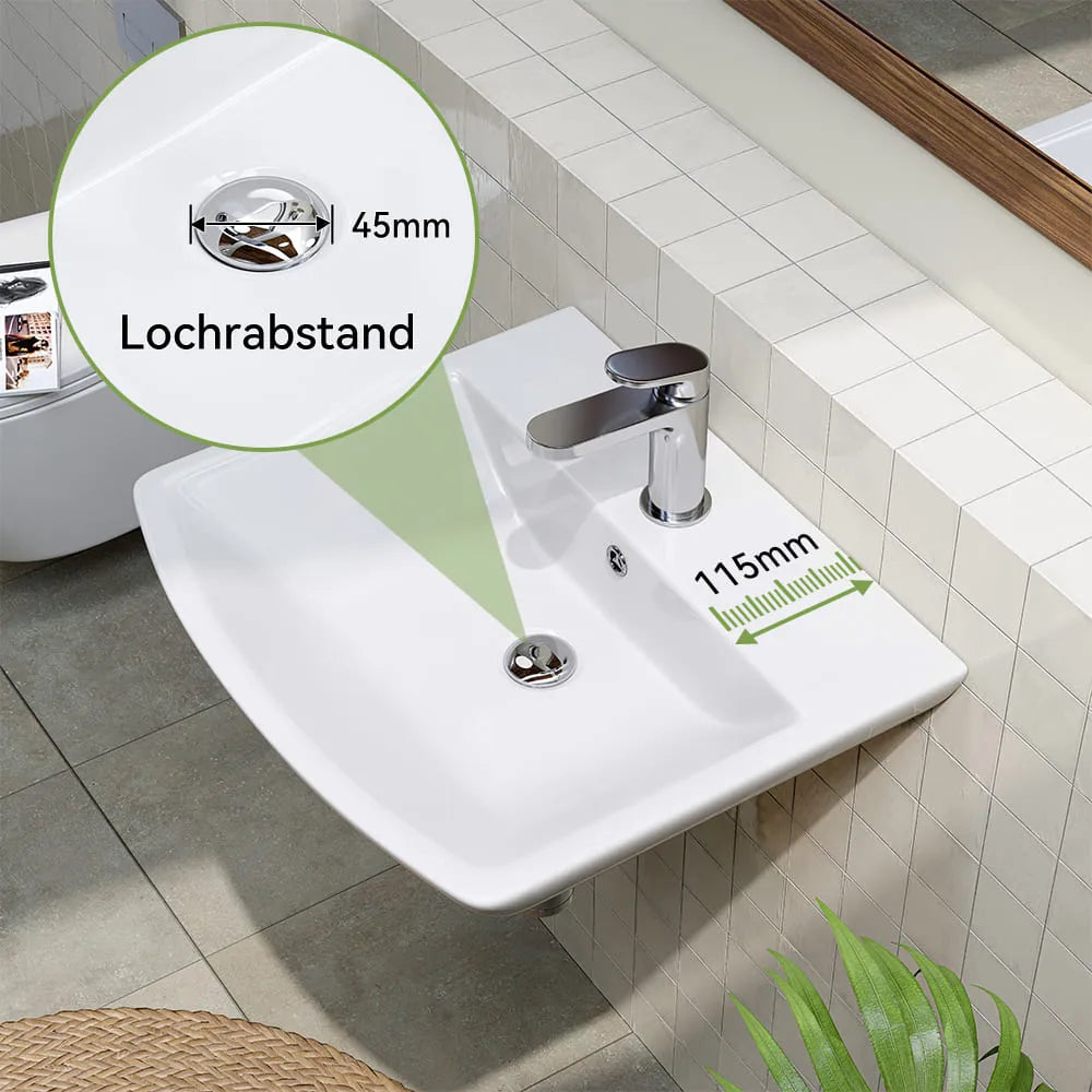 Mit 75 mm Tiefe und abgeschrägten Seiten verhindert das Becken effektiv Spritzer. - Hochwertige Keramik: