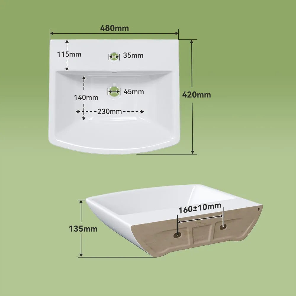 HOROW F08R-S4842W Waschbecken aus Keramik 48×42 cm