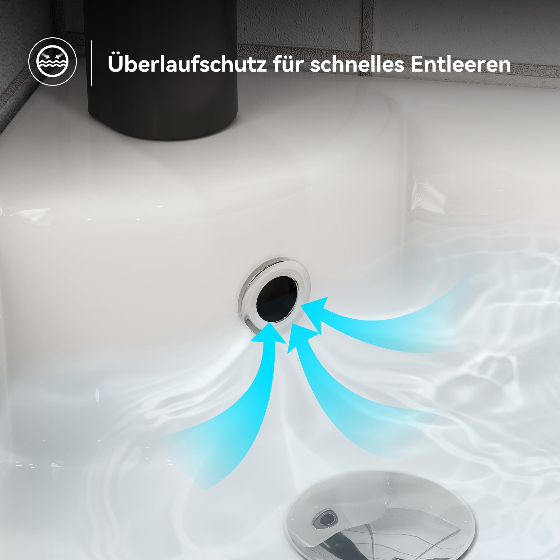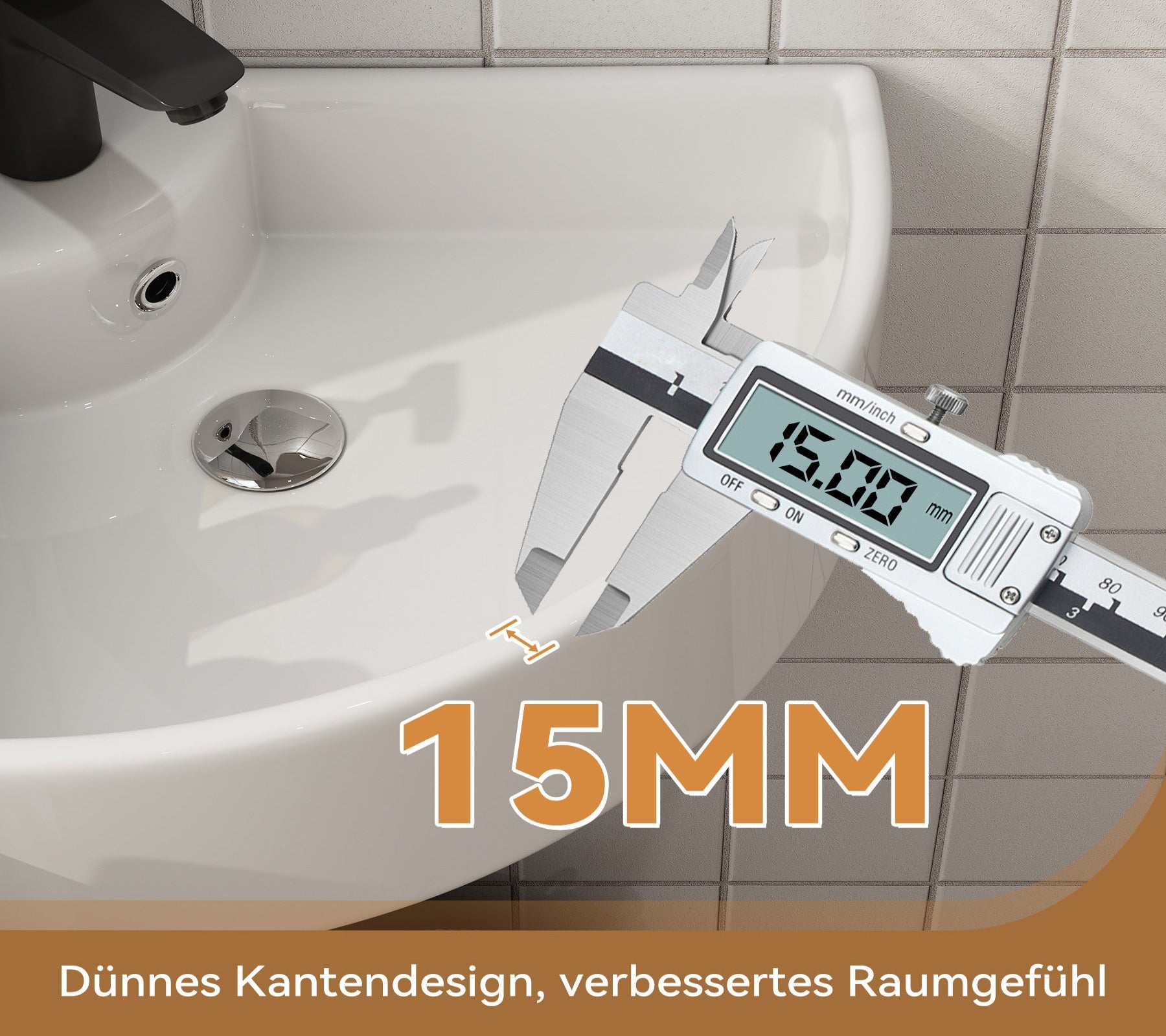 Das kompakte 46 cm Waschbecken bietet alle wichtigen Funktionen bei minimalem Platzbedarf – flexibel als Wand- oder Aufsatzwaschbecken einsetzbar. - Ultradünner Rand: