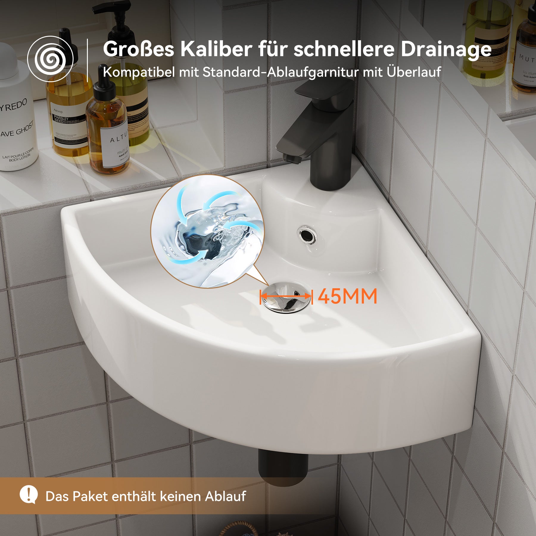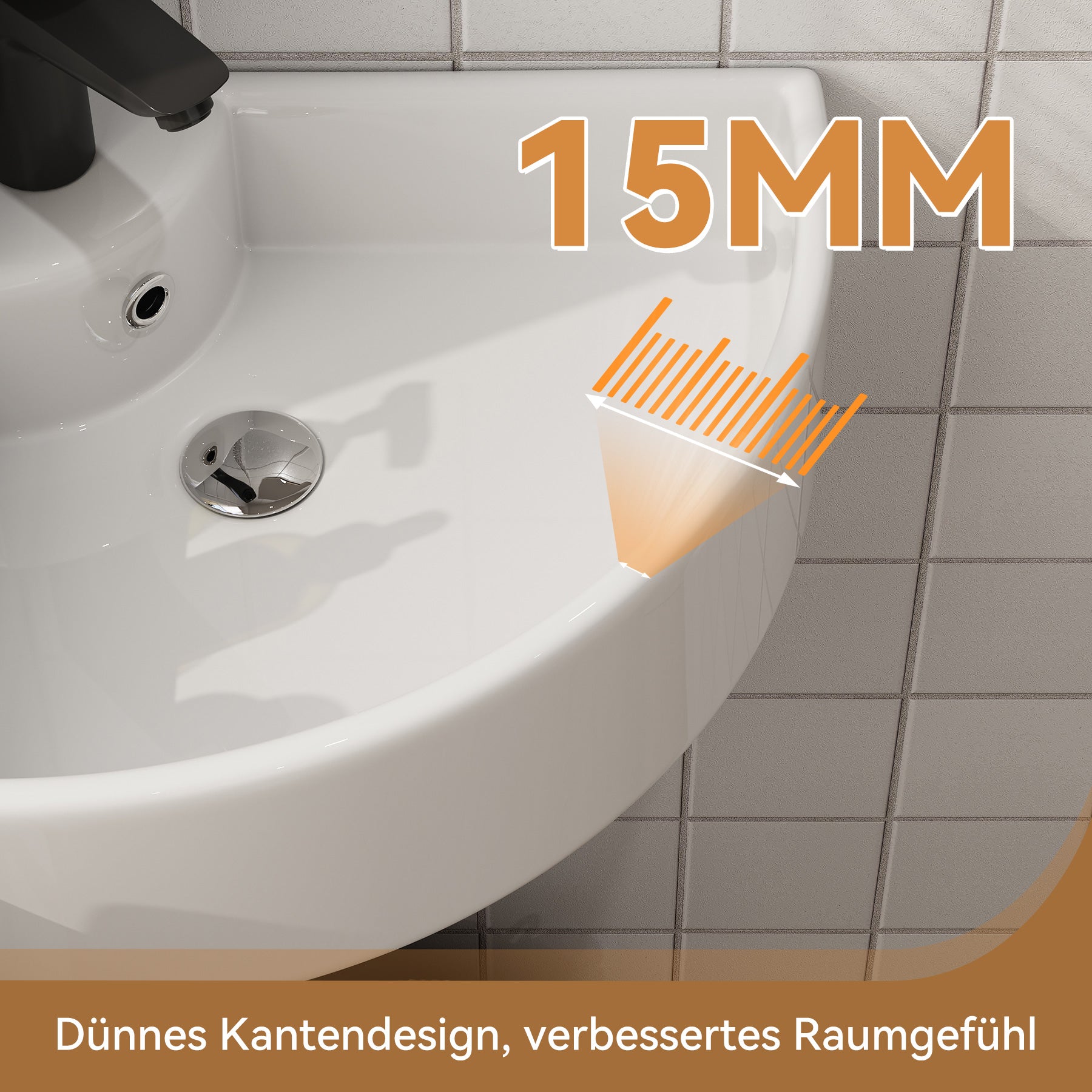 Dreieckige Form zur optimalen Raumnutzung – ideal für kleine Bäder oder Gäste-WCs. - Mit Hahnloch & Überlauf: