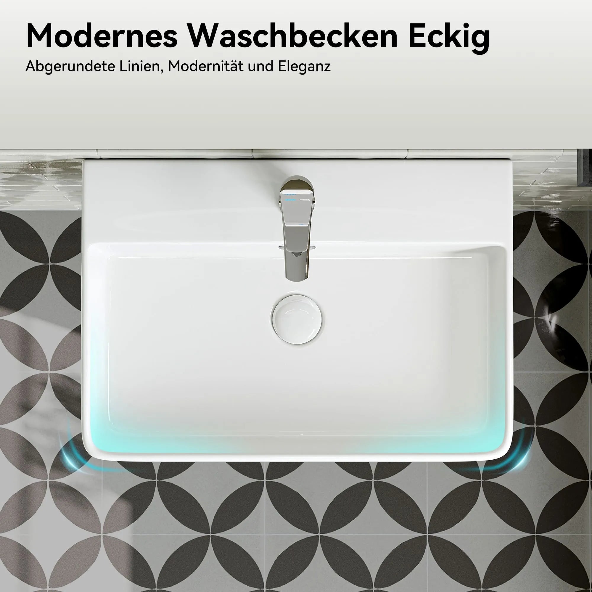 HOROW F10A-6042 Waschbecken 60 cm mit Hahnloch & Überlauf