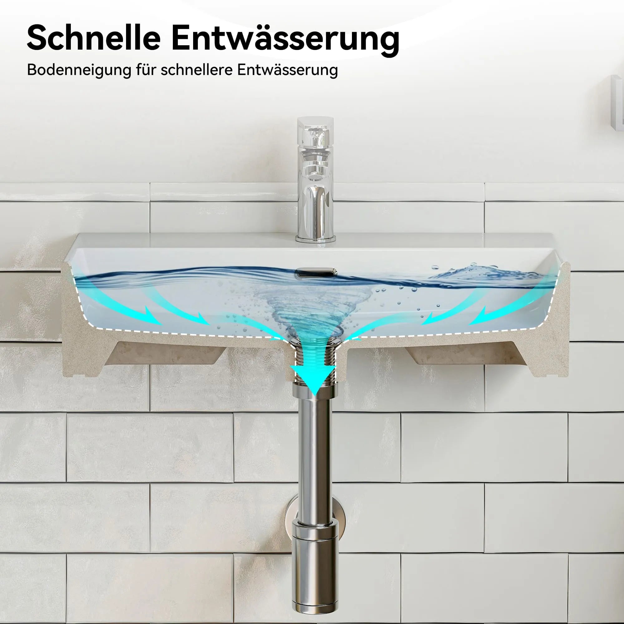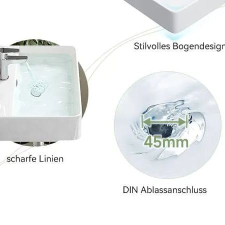 - Modernes Design: Quadratisches Keramik-Waschbecken mit dünnem Rand und klassischem Weiß, ideal für Bad, Gäste-WC oder Garten.