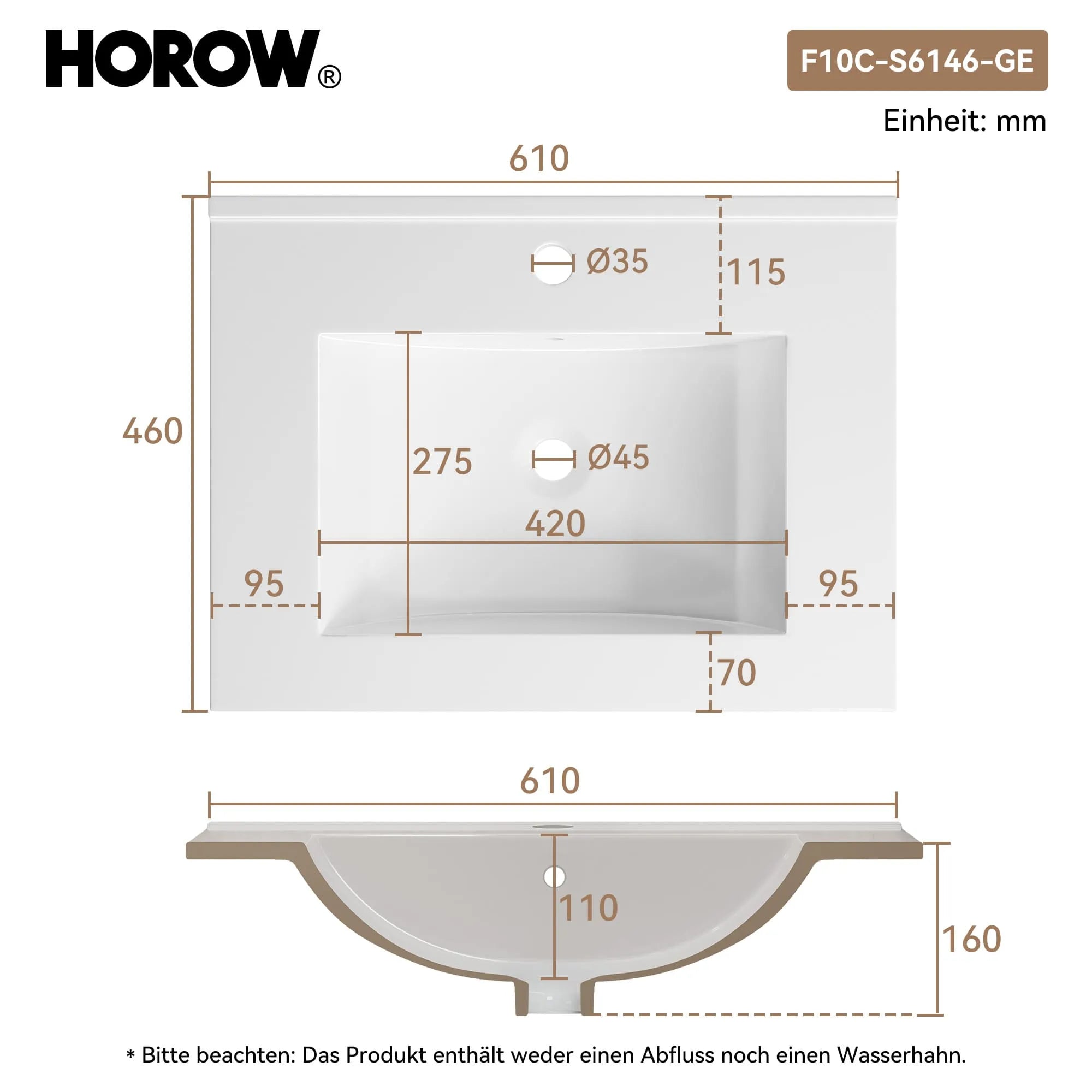 HOROW F10C-S6146 Einbau-Waschbecken 60 cm Breit