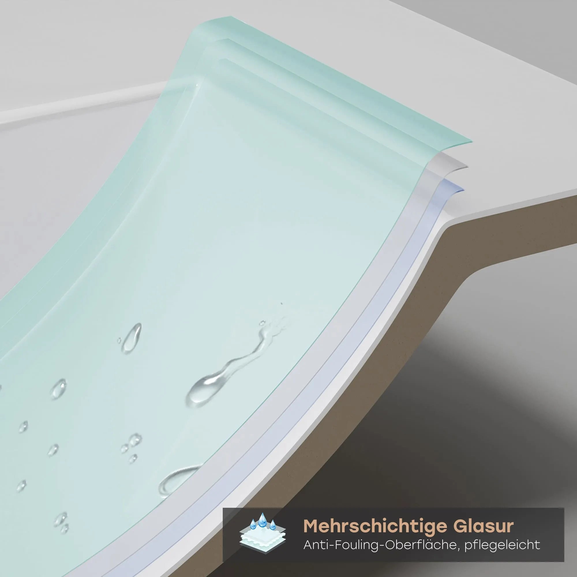 4.Raumsparend & stilvoll: Modernes weißes Design, perfekt für kleine Bäder, Gäste-WCs und eckige Unterschränke.