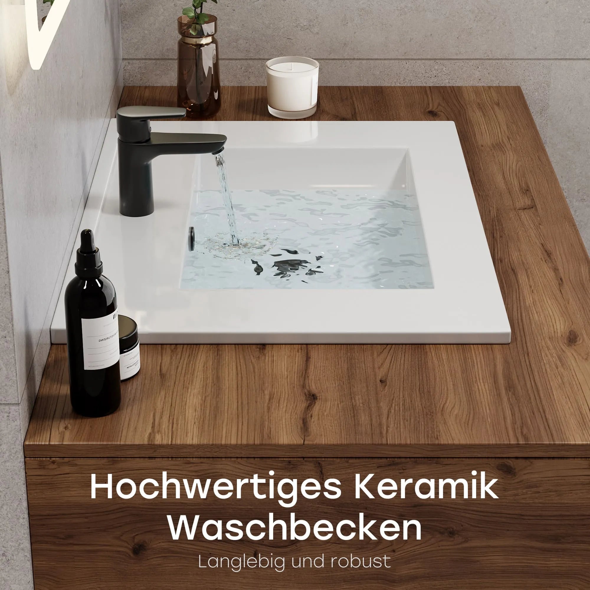 5.Universaler Einsatz: Kompatibel mit 60 cm Unterschränken und gängigen Waschtischplatten – ideal als Bad- oder Handwaschbecken.