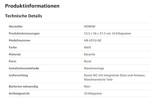 Die Toilette mit integrierten Bidet ist nach der Installation sehr komfortabel, um nach dem Gesch?ft sich komfortabel reinigen zu k?nnen. Dank der Warm-/ und Kaltwassereinatellung kann man die sich ideale Temperatur seitlich einstellen. Da es ein H?nge-WC ist, sollte man vor dem Kauf unbedingt auf die angegebenen Ma?e im Verkaufsangebot achten, da das WC recht tief ist. die Inbetriebnahme und Installation ist alles mit dabei was man normalerweise daf ben?tigt. Die beiliegende Bedienungsanleitung ist sehr gut und einfach erkl?rt. Das Material vom WC sowie auch der Deckel sind sehr stabil. Wenn jemand aus Platzgr nden eine Kombination sucht, und das dazu auch noch ansprechend, hat hier vielleicht sein Traum WC mit Bidet Kombination gefunden. Das Preis-Leistungsverh?ltnis ist akzeptabel da die Qualit?t stimmig ist. Wichtig ist dass man die Ma?e der Tiefe H?he und vom Rohranschluss beachtet. Da es sehr stabil gebaut ist, ist dieses WC mit Bidet auch recht gewichtig. eine Kombination aus beidem, ist dieses H?nge-WC mit Bidet Integration ein sehr empfehlenswertes Produkt. Auch die innere Reinigung vom WC-Becken ist komfortabel gestaltet so dass man in alle Ecken gut herankommt. Warm und Kaltwasseranschlsse sollten in der N?he sein, ansonsten ben?tigt man Verl?ngerungswasserschl?uche, wenn dieses ber 1 Meter hinausgeht. Insgesamt ein sehr empfehlenswertes und berzeugendes Produkt.