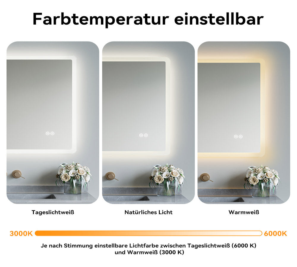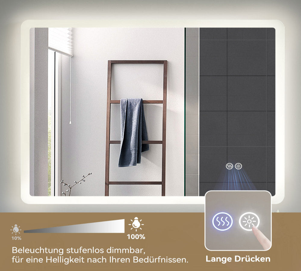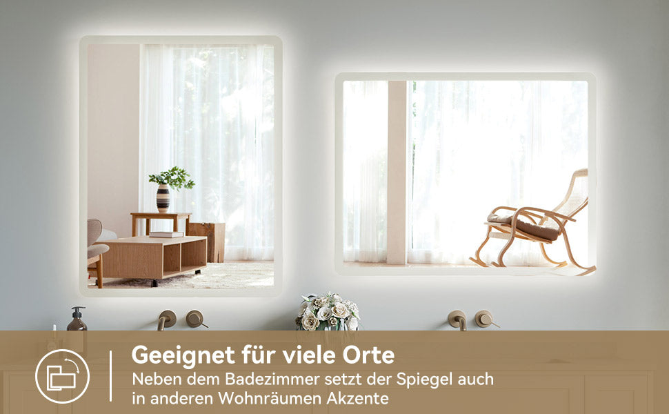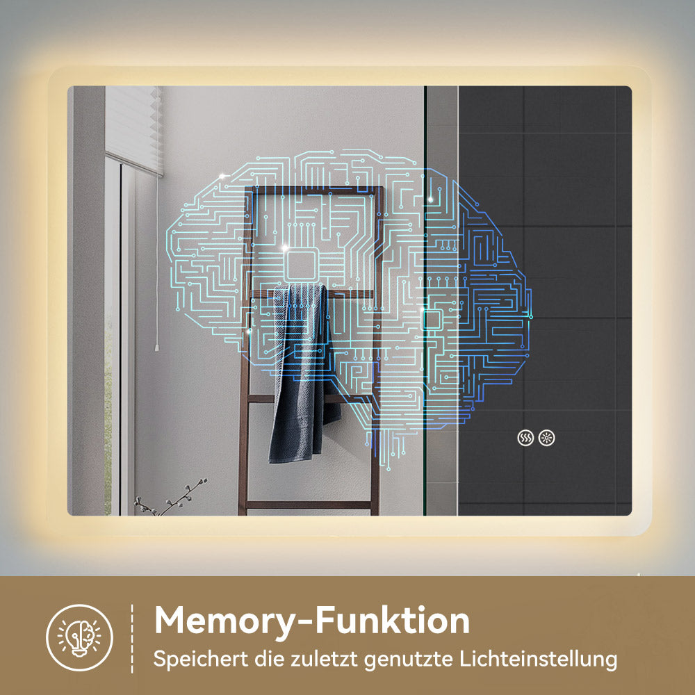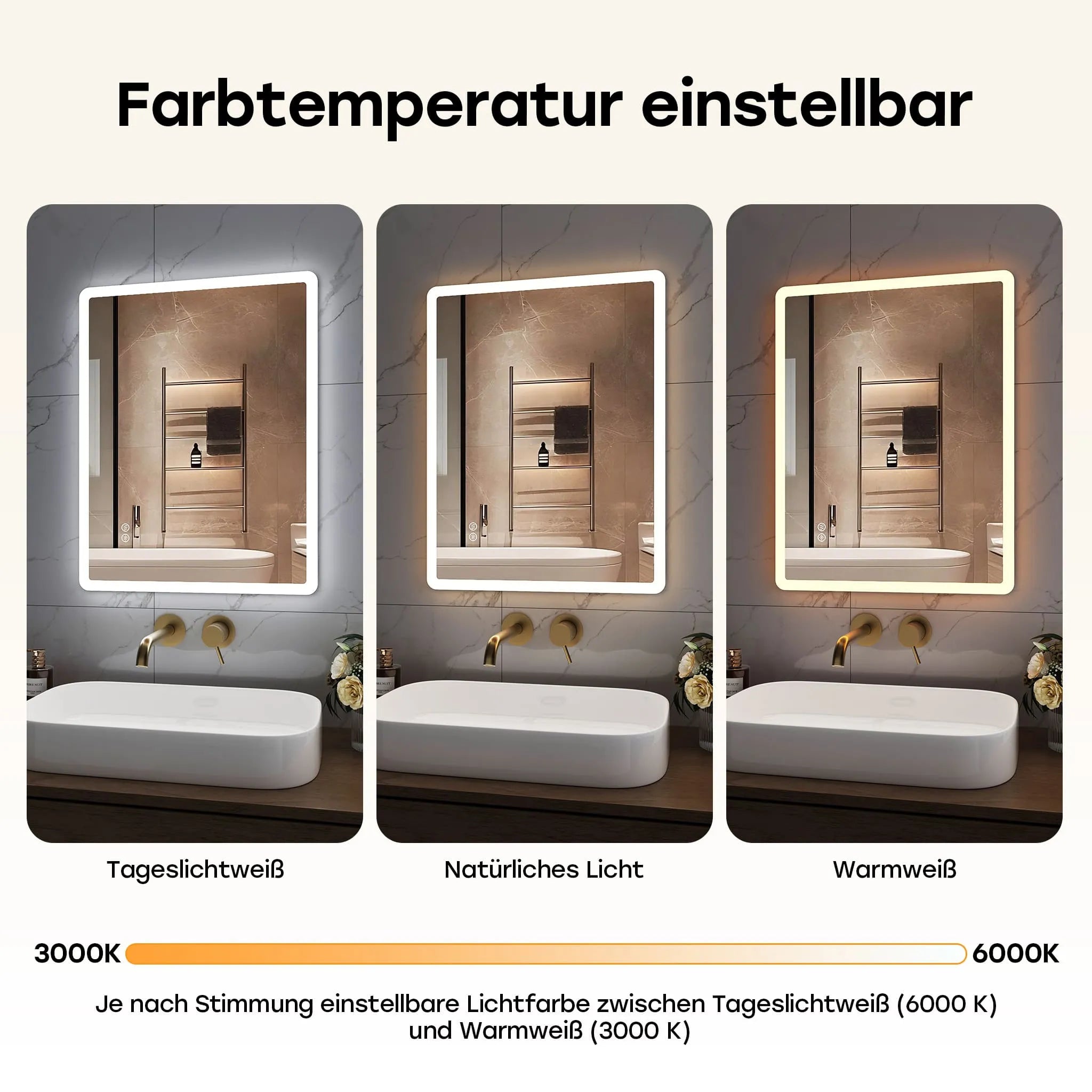 HOROW M7090S Badezimmer Wandspiegel LED mit Beleuchtung 70x90 cm