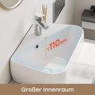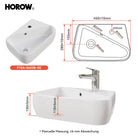 • Hinweis: Waschbecken ohne Abflussrohr, Wasserhahn und Unterschrank. Passende Ablaufgarnitur im HOROW Store erhältlich.