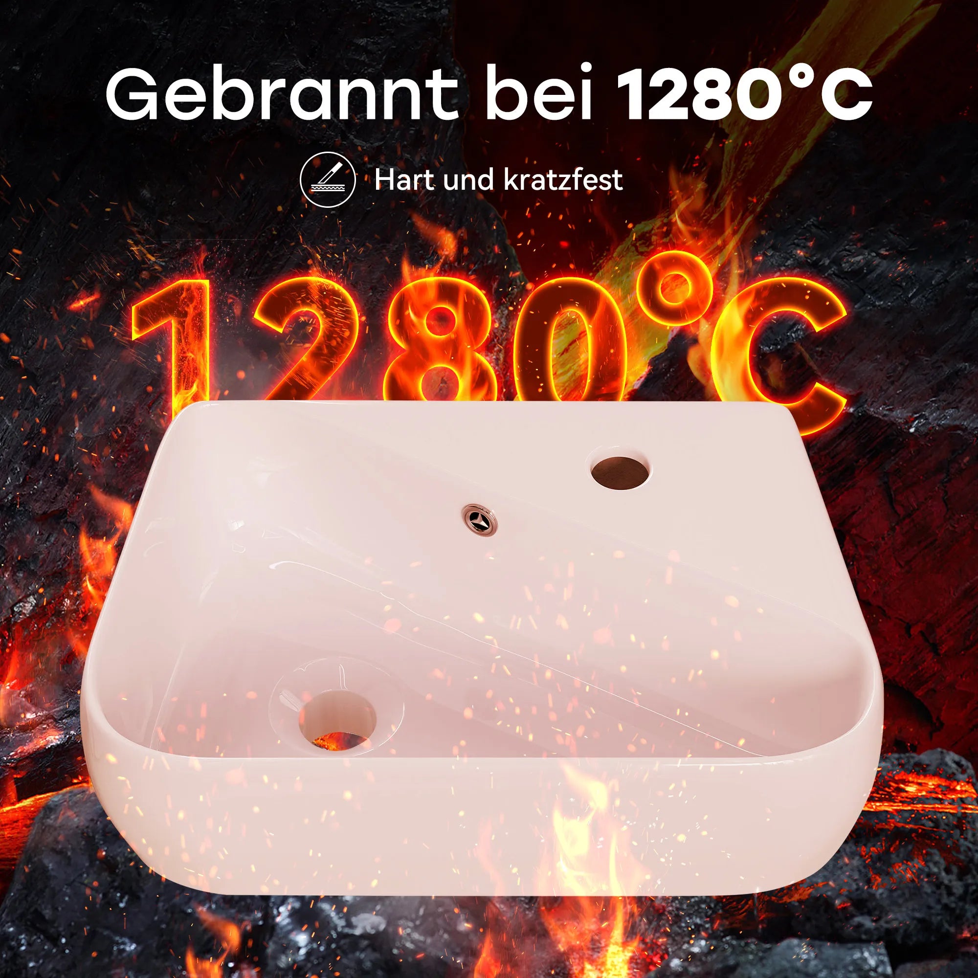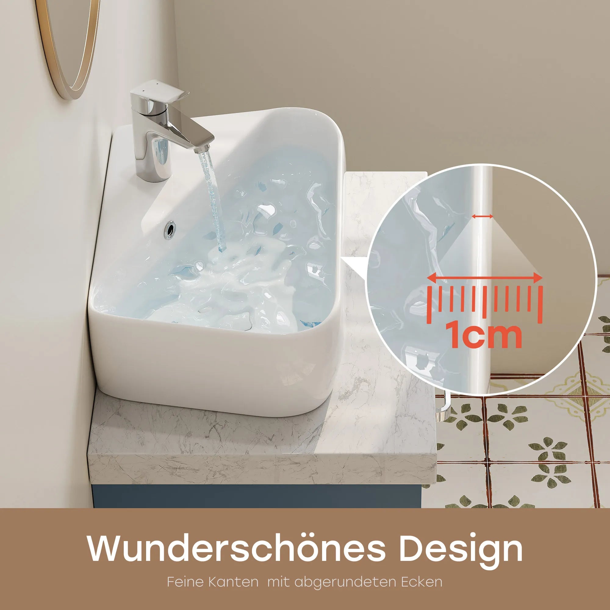 • Platzsparendes Design: Elegantes 45 cm Waschbecken mit Dünnrand und trapezförmigem Design (45 x 28 x 13 cm), ideal für kleine Badezimmer und Gäste-WCs.