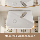 • Vielseitig & Praktisch: Kann als Aufsatzbecken verwendet werden, mit standardmäßigem Wasserhahnlöcher und Überlauf. Kombinierbar mit Badezimmerschrank oder Waschtischplatte.