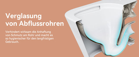 Die glatte, porenfreie Oberfläche verhindert effektiv das Anhaften von Schmutz und die Bildung von Bakterien – für eine dauerhaft hygienische Nutzung und leichte Reinigung. - Verglaste Abwasserrohre: